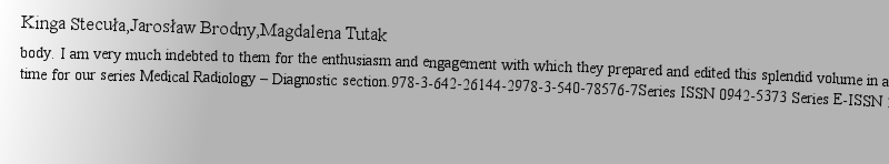 Katarzyna Antosz,Dorota Stadnickabody. I am very much indebted to them for the enthusiasm and engagement with which they prepared and edited this splendid volume in a record short time for our series Medical Radiology – Diagnostic section.978-3-642-26144-2978-3-540-78576-7Series ISSN 0942-5373 Series E-ISSN 2197-4187