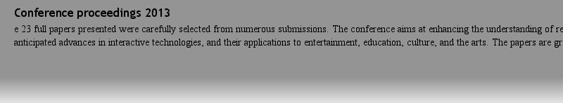 Titlebook: Intelligent Technologies for Interactive Entertainment; 5th International IC Matei Mancas,Nicolas d’ Alessandro,Thierry Dutoit Conference p |