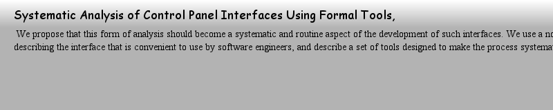 Titlebook: Interactive Systems. Design, Specification, and Verification; 15th International W T. C. Nicholas Graham,Philippe Palanque Conference proce |