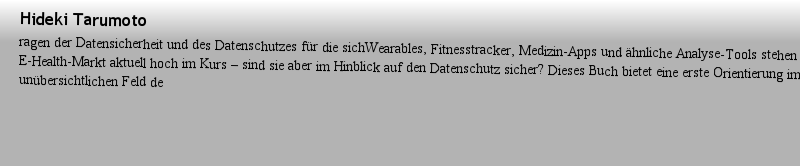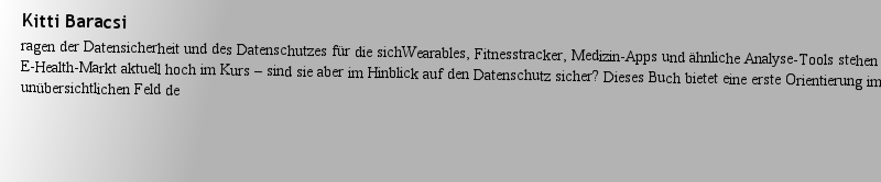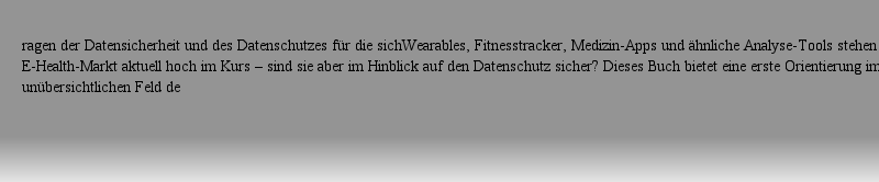 Thea De Gruchyragen der Datensicherheit und des Datenschutzes für die sichWearables, Fitnesstracker, Medizin-Apps und ähnliche Analyse-Tools stehen im E-Health-Markt aktuell hoch im Kurs – sind sie aber im Hinblick auf den Datenschutz sicher? Dieses Buch bietet eine erste Orientierung im unübersichtlichen Feld de