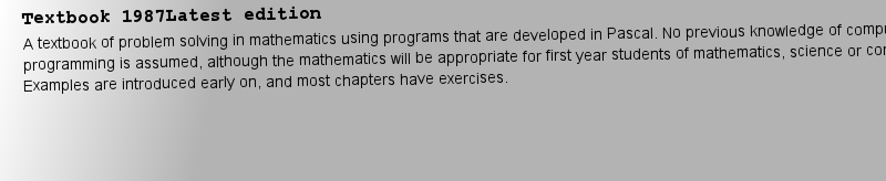 Titlebook: Introduction to PASCAL for Computational Mathematics; E. J. Redfern Textbook 1987Latest edition Macmillan Publishers Limited 1987 algebra. |