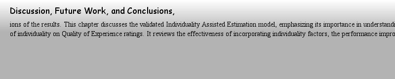 Titlebook: Individualized Quality of Experience Estimation in Audiovisual Communication; Robert Philipp Spang Book 2024 The Editor(s) (if applicable) |