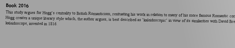 Titlebook: James Hogg and British Romanticism; A Kaleidoscopic Art Meiko O’Halloran Book 2016 The Editor(s) (if applicable) and The Author(s) 2016 Jam |