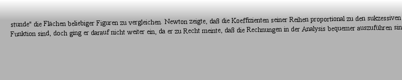 Miriam Lotzstunde" die Flächen beliebiger Figuren zu vergleichen. Newton zeigte, daß die Koeffizienten seiner Reihen proportional zu den sukzessiven Ableitungen der Funktion sind, doch ging er darauf nicht weiter ein, da er zu Recht meinte, daß die Rechnungen in der Analysis bequemer auszuführen sind, wenn man