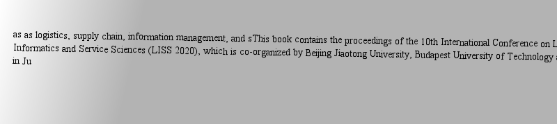 Titlebook: LISS 2020; Proceedings of the 1 Shifeng Liu,Gábor Bohács,Anqiang Huang Conference proceedings 2021 The Editor(s) (if applicable) and The Au |