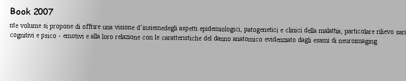 | 描述 | .La sclerosi multipla rappresenta una delle cause più frequenti di disabilità cronica nei giovani adulti. Essa colpisce, soprattutto, individui tra i 20 e i 50 anni di età, con un picco di incidenza intorno ai 30 anni. Tale malattia è caratterizzata dalla presenza di lesioni demielinizzanti di natura infiammatoria disseminate nel sistema nervoso centrale. La diversa localizzazione di tali lesioni è alla base della variabilità della sintomatologia clinica che puo‘ essere caratterizzata da disturbi motori, sensitivi, neurovegetativi e cognitivi. Questi ultimi riguardano circa la metà dei pazienti affetti da tale patologia e hanno una notevole incidenza sulla situazione personale, familiare e lavorativa di tali pazienti...La necessità di sottoporre i pazienti affetti da sclerosi multipla a una terapia riabilitativa degli eventuali deficit cognitivi è, pero‘, acquisizione recente. ..Il presente volume si propone di offrire una visione d‘insiemedegli aspetti epidemiologici, patogenetici e clinici della malattia; particolare rilievo sarà dato agli aspetti cognitivi e psico - emotivi e alla loro relazione con le caratteristiche del danno anatomico evidenziato dagli esami di neuroimaging. |