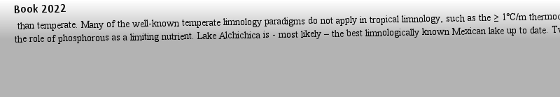| 书目名称 | Lake Alchichica Limnology | | 副标题 | The Uniqueness of a | | 编辑 | Javier Alcocer | | 视频video | http://file.papertrans.cn/581/580483/580483.mp4 | | 概述 | Focus on tropical limnology which is far less well known and understood than temperate limnology.Provides a multidisciplinary analysis of an unique Maar Lake in Mexico.Offers readers the result of a l | | 图书封面 |  | | 描述 | The book provides a comprehensive account of a tropical lake, Alchichica, considering that tropical limnology is by far less known and well-understood than temperate. Many of the well-known temperate limnology paradigms do not apply in tropical limnology, such as the ≥ 1ºC/m thermocline concept, or the role of phosphorous as a limiting nutrient. Lake Alchichica is - most likely – the best limnologically known Mexican lake up to date. Twenty years of continuous monitoring has led us to understand this deep, warm monomictic lake. The peculiar chemical composition of this saline lake – sodium-alkaline with a high concentration in magnesium waters, and groundwater-fed – led to the formation of its unique stromatolite ring that has become world-famous, studied by scientists from various countries. From a biological point of view, this relatively small maar lake displays a comparatively low species richness but surprisingly is plentiful in microendemic species for a recently-formed lake (13,000-6,300 years old, at the Late Pleistocene/Holocene Epoch), eleven of which already described, with more to come. Researchers and students interested in tropical limnology, extreme ecosystems, evolu | | 出版日期 | Book 2022 | | 关键词 | Warm monomictic lakes; Saline lakes; Tropical food webs; Microbialites; Stromatolites; Cyanobacterial blo | | 版次 | 1 | | doi | https://doi.org/10.1007/978-3-030-79096-7 | | isbn_softcover | 978-3-030-79098-1 | | isbn_ebook | 978-3-030-79096-7 | | copyright | The Editor(s) (if applicable) and The Author(s), under exclusive license to Springer Nature Switzerl |