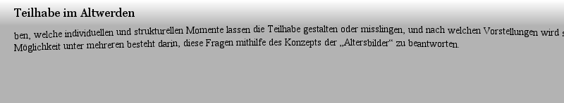 Titlebook: Leben - Teilhaben - Altwerden; Vermutungen und Gewi Anton Amann Book 2019 Springer Fachmedien Wiesbaden GmbH, ein Teil von Springer Nature |