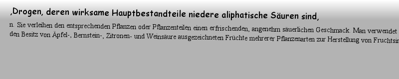 ,Drogen, deren wirksame Hauptbestandteile Zucker oder verwandte Süßstoffe mit sechs Kohlenstoffatomesich sogar in größeren Mengen vor, so daß sie diesen einen stark süßlichen Geschmack verleihen. Von solchen süßschmeckenden Früchten mit hohem Fruktose- und Glukosegehalt werden heute nur noch die Caricae gelegentlich als süßmachendes Geschmackskorrigens gebraucht. Häufiger wird Melals Geschmackskor