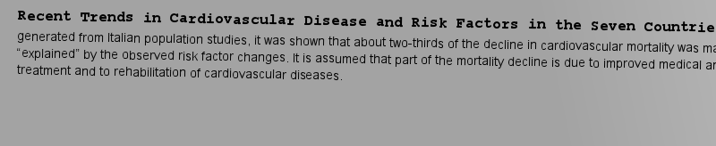 | 关键词 | Cardiovascular Disease Epidemiology; Coronary Risk Factors; Seven Countries Study; cardiovascular; epide |