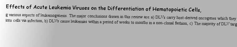 Titlebook: Leukemia; Report of the Dahlem I. L. Weissman Conference proceedings 1985 Dr. S. Bernhard, Dahlem Konferenzen, Berlin 1985 cell.evolution.g |