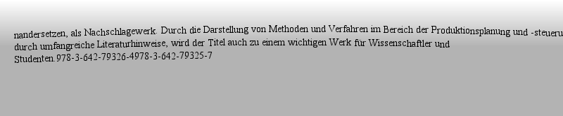 | 关键词 | Fertigung; Fertigungsleittechnik; Industrie; Nachschlagewerk; Planung; Produktion; Produktionsplanung; Steu |
