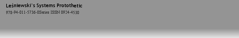 Titlebook: Leśniewski’s Systems Protothetic; Jan T. J. Srzednicki,Zbigniew Stachniak Book 1998 Springer Science+Business Media Dordrecht 1998 bibliog |