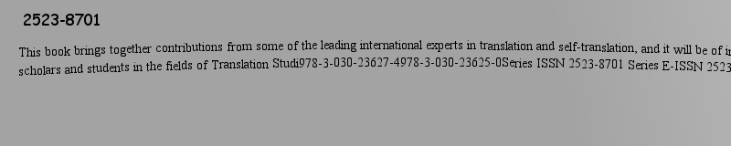 | 书目名称 | Literary Self-Translation in Hispanophone Contexts - La autotraducción literaria en contextos de hab |