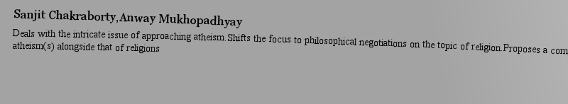 Titlebook: Living without God: A Multicultural Spectrum of Atheism; Sanjit Chakraborty,Anway Mukhopadhyay Book 2022 The Editor(s) (if applicable) and |