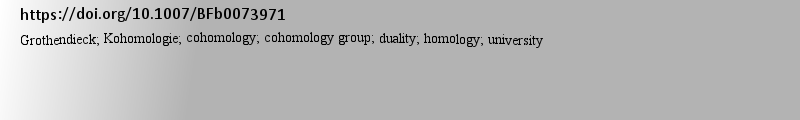 | 书目名称 | Local Cohomology | | 副标题 | A Seminar Given by A | | 编辑 | Robin Hartshorne | | 视频video | http://file.papertrans.cn/588/587603/587603.mp4 | | 丛书名称 | Lecture Notes in Mathematics | | 图书封面 |  | | 出版日期 | Book 1967 | | 关键词 | Grothendieck; Kohomologie; cohomology; cohomology group; duality; homology; university | | 版次 | 1 | | doi | https://doi.org/10.1007/BFb0073971 | | isbn_softcover | 978-3-540-03912-9 | | isbn_ebook | 978-3-540-35183-2Series ISSN 0075-8434 Series E-ISSN 1617-9692 | | issn_series | 0075-8434 | | copyright | Springer-Verlag Berlin Heidelberg 1967 |