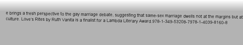 Titlebook: Love’s Rite; Same-Sex Marriage in Ruth Vanita Book 2005 Ruth Vanita 2005 gender.marriage.women |