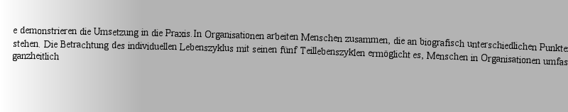 | 概述 | Grundlagenwerk mit Praxisbezug.Darstellung der Relevanz des individuellen menschlichen Lebenszyklus für die Personalentwicklung.Fallbeispiele demonstrieren die Umsetzung in die Praxis |