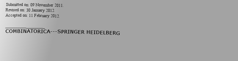| 期刊全称 | COMBINATORICA | | 期刊简称 | COMBINATORICA | | 影响因子2024 | 1.133 | | 视频video | http://file.papertrans.cn/6/5931/5931.mp4 | | ISSN | 0209-9683 | | eISSN | 1439-6912 | | 出版商 | SPRINGER HEIDELBERG | | 发行地址 | TIERGARTENSTRASSE 17, HEIDELBERG, GERMANY, D-69121 | | 学科分类 | 1.Science Citation Index Expanded (SCIE)--Mathematics; 2.Current Contents Engineering, Computing & Technology--Computer Science & Engineering; 3.Current Contents Physical, Chemical & Earth Sciences--Mathematics; 4.Essential Science Indicators--Mathematics; | | 出版语言 | English |
