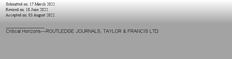 ESCI期刊Critical Horizons 2024/2025影响因子:0.449 (CRIT HORIZ) (1440-9917). (SOCIAL SCIENCES, INTERDISCIPLINARY)(社会科学,跨学科)Eme |