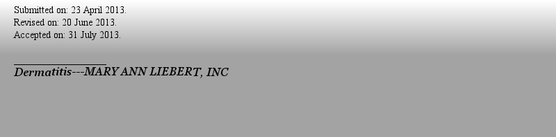 Submitted on: 03 July 2012. Revised on: 18 September 2012. Accepted on: 28 September 2012. ___________________Dermatitis---MARY ANN LIEBERT, INC