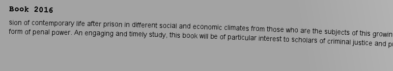 | 关键词 | Criminology; Penology; Punishment; Desistance; Offenders; Probation; Release; Rehabilitation; Supervision |