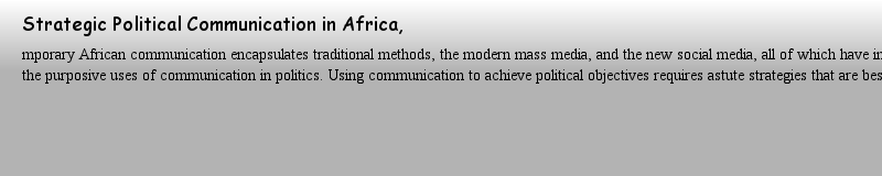 Titlebook: Political Communication in Africa; Ayo Olukotun,Sharon Adetutu Omotoso Book 2017 Springer International Publishing AG 2017 African Politic |