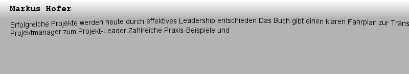 Titlebook: Project-Leadership ; So entwickeln Sie si Markus Hofer Book 2024 Der/die Herausgeber bzw. der/die Autor(en), exklusiv lizenziert an Springe |