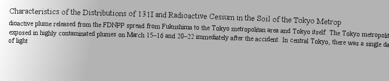 | 书目名称 | Radioactive Contamination of the Tokyo Metropolitan Area | | 副标题 | Five Years after the | | 编辑 | Hideo Yamazaki | | 视频video | http://file.papertrans.cn/821/820669/820669.mp4 | | 概述 | Presents the actual situation of radioactive contamination in Tokyo metropolitan.Provides measured data of the behaviour and balance of radionuclides in urban areas.Provides comprehensive analysis of | | 图书封面 |  | | 描述 | .This book presents the 5-year monitoring of radioactive contamination in the Tokyo metropolitan area due to the Fukushima accident, covering radiation monitoring of soil, litter, river, water, seawater, aquatic sediments, fish and shellfish, and plants in urban areas. Based on spatial and temporal data, it evaluates the environmental radiation contamination of the Tokyo metropolitan following the first nuclear accident affecting an urban area since Chernobyl. Since little is known about the contamination in Kiev city, this data is particularly valuable, offering insights into the dynamics of radioactive contamination in metropolitan areas, which are of interest in relation to the behavior of radionuclides resulting not only from nuclear accidents but also from nuclear terrorism? As such, this book will be appeal to nuclear and radiation experts, environmental administration professionals and specialists in environmental protection groups, as well as student and academics in the related fields.. | | 出版日期 | Book 2020 | | 关键词 | Fukushima Nuclear Disaster; Tokyo city; Radioactive contamination in urban area; Radioactive Cesium; Rad | | 版次 | 1 | | doi | https://doi.org/10.1007/978-981-15-7368-2 | | isbn_softcover | 978-981-15-7370-5 | | isbn_ebook | 978-981-15-7368-2 | | copyright | Springer Nature Singapore Pte Ltd. 2020 |