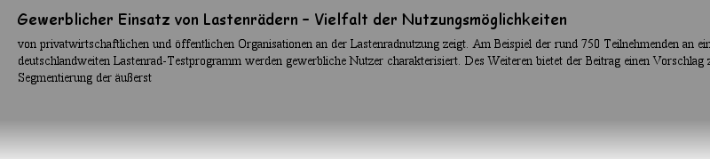 Titlebook: Radlogistik; Grundlagen zu Logist Tom Assmann,Anna Bürklen,Christian Rudolph Book‘‘‘‘‘‘‘‘ 2024 Deutsches Zentrum für Luft- und Raumfahrt e. |