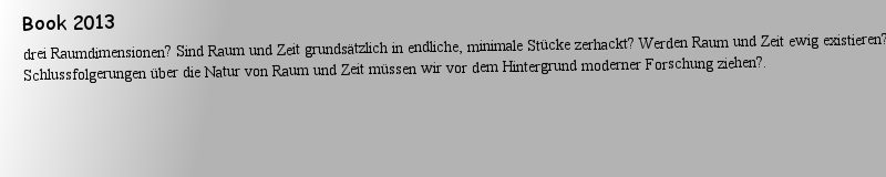 描述 | .Raum und Zeit sind die große Bühne, auf der sich unser Leben und alle irdischen und kosmischen Vorgänge abspielen. Meist erleben wir Raum und Zeit als unveränderlich und unbeeinflussbar. Doch Raum und Zeit könnten Eigenschaften haben, von denen selbst Einstein nicht zu träumen wagte. Andreas Müller erläutert unser modernes und höchst faszinierendes naturwissenschaftliches Weltbild und stellt das erfolgreiche Konzept der Raumzeit vor, das vor gut hundert Jahren von Albert Einstein begründet wurde. Darüber hinaus führt er den Leser bis zu den spannendsten Fragen der Gegenwart: Gibt es mehr als drei Raumdimensionen? Sind Raum und Zeit grundsätzlich in endliche, minimale Stücke zerhackt? Werden Raum und Zeit ewig existieren? Und welche Schlussfolgerungen über die Natur von Raum und Zeit müssen wir vor dem Hintergrund moderner Forschung ziehen?. |
