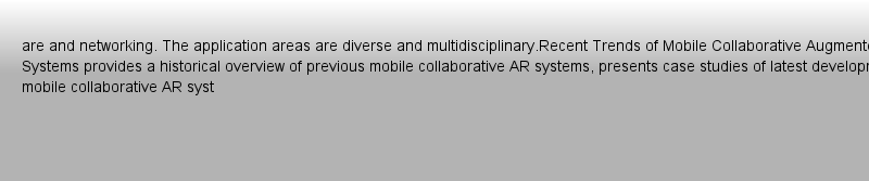 Titlebook: Recent Trends ofMobile Collaborative Augmented Reality Systems; Leila Alem,Weidong Huang Conference proceedings 2011 Springer Science+Busi |