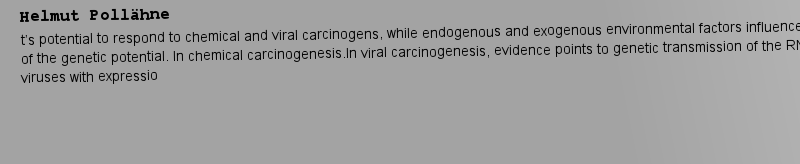 Hans-Dieter Lippertt’s potential to respond to chemical and viral carcinogens, while endogenous and exogenous environmental factors influence the realization of the genetic potential. In chemical carcinogenesis.In viral carcinogenesis, evidence points to genetic transmission of the RNA oncogenic viruses with expressio