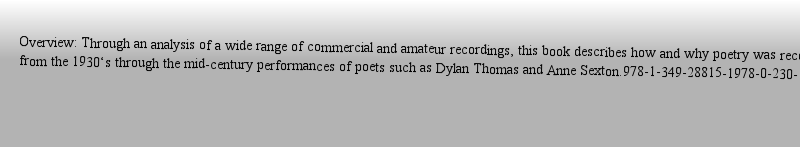 Titlebook: Recorded Poetry and Poetic Reception from Edna Millay to the Circle of Robert Lowell; Derek Furr Book 2010 Palgrave Macmillan, a division |