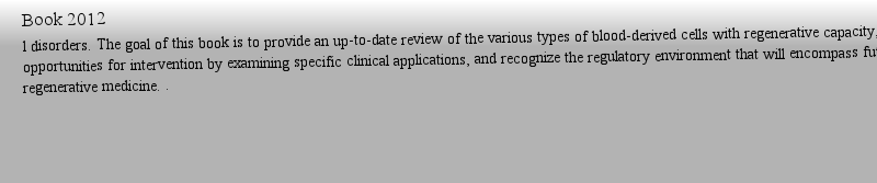 Titlebook: Regenerative Therapy Using Blood-Derived Stem Cells; David S. Allan,Dirk Strunk Book 2012 Springer Science+Business Media, LLC 2012 Allan. |