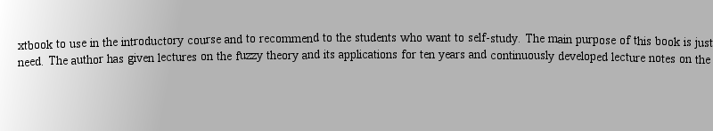 ondensed and understandable styleFuzzy theory has become a subject that generates much interest among the courses for graduate students. However, it was not easy to find a suitable textbook to use in the introductory course and to recommend to the students who want to self-study. The main purpose of