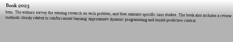 Titlebook: Reinforcement Learning in the Ridesharing Marketplace; Zhiwei (Tony) Qin,Xiaocheng Tang,Jieping Ye Book 2025 The Editor(s) (if applicable) |