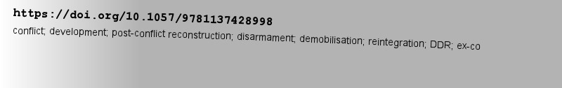 关键词 | conflict; development; post-conflict reconstruction; disarmament; demobilisation; reintegration; DDR; ex-co |