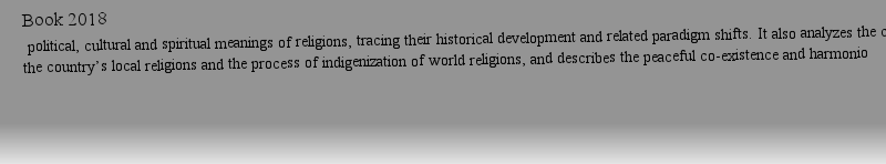 | 描述 | .This book comprehensively examines religious faith in China from the perspective of cultural philosophy and cultural history. It explores the social, political, cultural and spiritual meanings of religions, tracing their historical development and related paradigm shifts. It also analyzes the characteristics of the country’s local religions and the process of indigenization of world religions, and describes the peaceful co-existence and harmonious confluence of multiple religions in Chinese spiritual life, revealing the vibrant and diverse colors of its religious culture. Examining these religions’ social and cultural functions in contemporary Chinese society, the book demonstrates the rich and complex intertwinement of religious faith, cultural spirit and national disposition among the Chinese people.. |