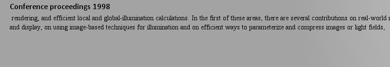 Titlebook: Rendering Techniques ’98; Proceedings of the E George Drettakis,Nelson Max Conference proceedings 1998 Springer-Verlag Wien 1998 3D.3D grap |