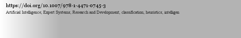 | 关键词 | Artificial Intelligence; Expert Systems; Research and Development; classification; heuristics; intelligen |