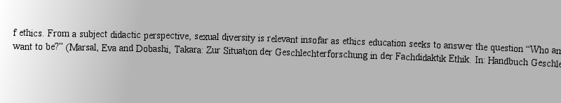 Alun Preece,Kit Hui,Alex Gray,Philippe Marti,Trevor Bench-Capon,Dean Jones,Zhan Cuif ethics. From a subject didactic perspective, sexual diversity is relevant insofar as ethics education seeks to answer the question “Who am I, who do I want to be?” (Marsal, Eva and Dobashi, Takara: Zur Situation der Geschlechterforschung in der Fachdidaktik Ethik. In: Handbuch Geschlechterforschun