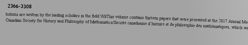 丛书名称 | Proceedings of the Canadian Society for History and Philosophy of Mathematics/‘Société canadienne d’ |