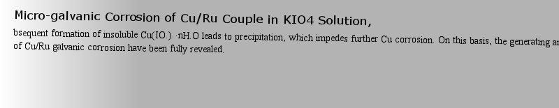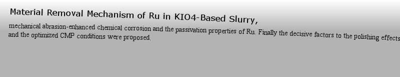 Material Removal Mechanism of Cu in KIO4-Based Slurry,actor during Cu CMP in a KIO.-based slurry is the chemical-mechanical synergistic effect. A high MRR and ideal surface quality could be obtained when abrasion-enhanced corrosion and corrosion-enhanced abrasion effects are high and balanced. Therefore, the weak alkaline slurries are the ideal polishing slurry during the P3 stage of Cu polishing.