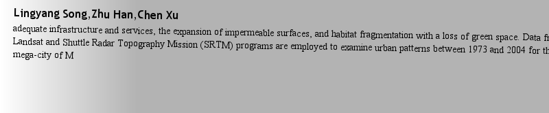 Lingyang Song,Zhu Han,Chen Xuadequate infrastructure and services, the expansion of impermeable surfaces, and habitat fragmentation with a loss of green space. Data from NASA’s Landsat and Shuttle Radar Topography Mission (SRTM) programs are employed to examine urban patterns between 1973 and 2004 for the coastal mega-city of M