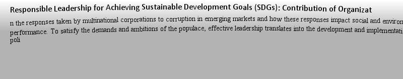 Research in Leadership and Sustainability Development Goals Through the Lens of Bibliometric Analysives in line with the SDGs. Leadership is crucial for achieving SDGs. A study of the Scopus database shows that there has been tremendous research in the area of leadership and SDG. This highlights the significance of this domain of research. However, there is a need to provide a holistic view of the