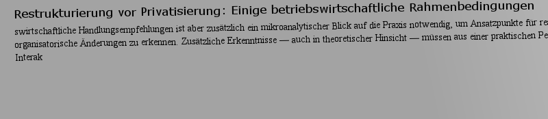 Restrukturierungszwänge, Staatsunternehmen und Unternehmenskontrolle: reale Welt und neoinstitutionafgabe effektiver und schneller bewältigen als gut abgesicherte vergleichbare Staatsunternehmen, illustriert empirisch die Relevanz von Eigentumsstrukturen.. Sie deutet gleichzeitig darauf hin, daß politische Absichtserklärungen zur Effizienzsteigerung von staatlichen Unternehmen, etwa durch Erhöhung