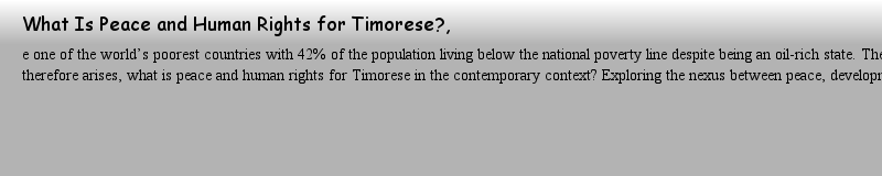 Titlebook: Rethinking Human Rights and Peace in Post-Independence Timor-Leste Through Local Perspectives; Ying Hooi Khoo,Antero Benedito da Silva,The |