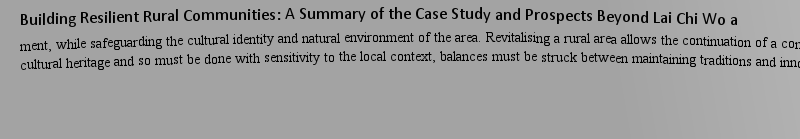 | 关键词 | Sustainable rural community; Rural sustainability; Lai Chi Wo village; Socio-ecological system; Sustaina |