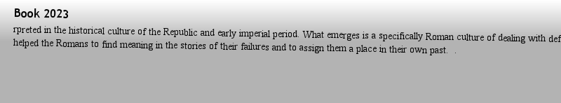 | 概述 | Study on the Roman culture of remembrance on the basis of current Theories of Memory.Rome‘s defeats in the mirror of Roman historiography.Rome and the relationship to military defeat |